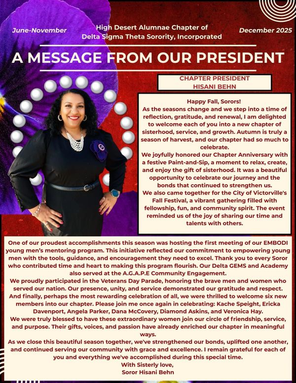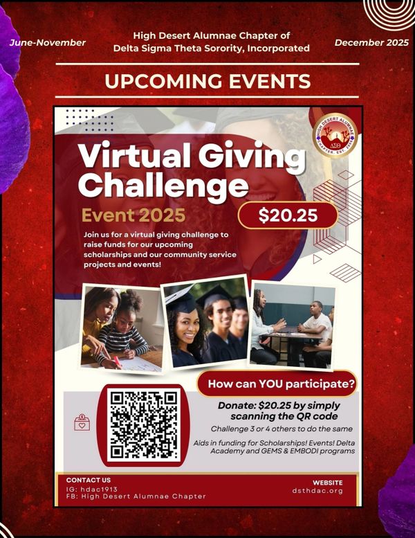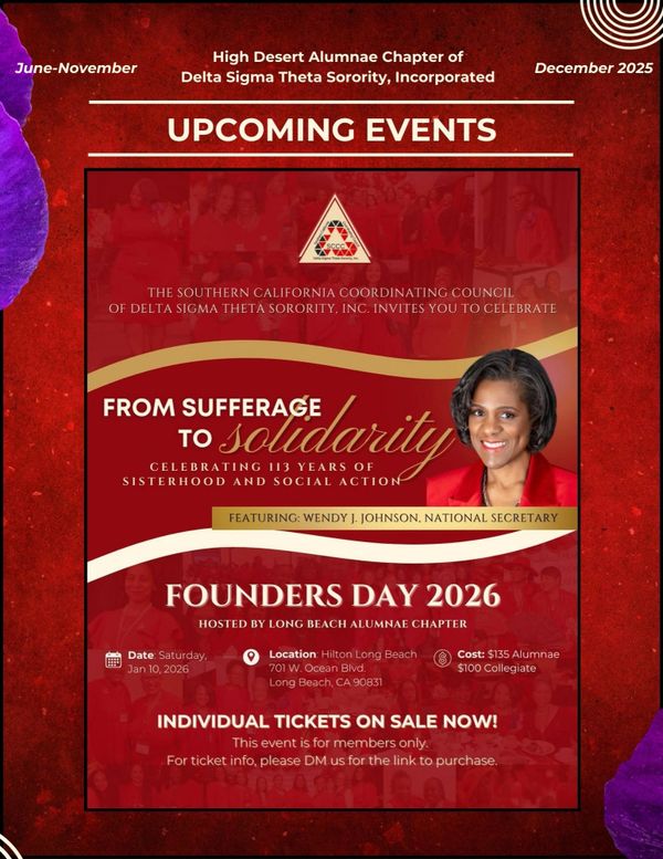 This website is the sole property and responsibility of the High Desert Alumnae Chapter of Delta Sigma Theta Sorority, Incorporated.