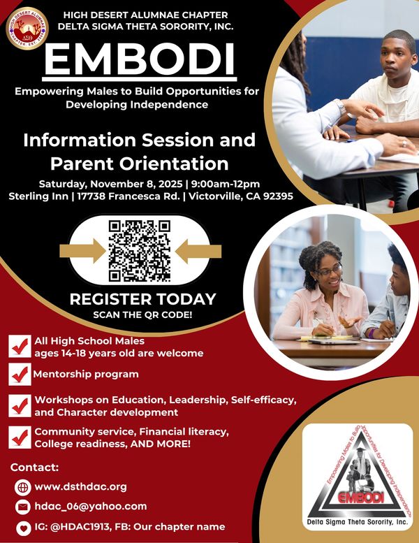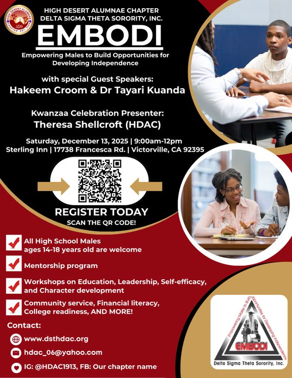 These FREE programs, presented by the High Desert Alumnae Chapter of Delta Sigma Theta Sorority, Inc., are designed to uplift and empower young women through workshops, mentorship, and life-enriching experiences.